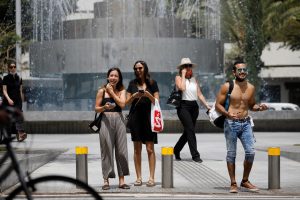 [Pedestrians wait to cross a street as Israel rescinds the mandatory wearing of face masks outdoors in the latest return to relative normality, boosted by a mass-vaccination campaign against the coronavirus disease (COVID-19) pandemic, in Tel Aviv, Israel April 18, 2021. REUTERS/Amir Cohen]