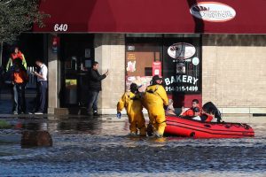 First responders pull local residents in a boat as they perform rescues of people trapped by floodwaters after the remnants of Tropical Storm Ida brought drenching rain, flash floods and tornadoes to parts of the northeast in Mamaroneck, New York, U.S., September 2, 2021. REUTERS/Mike Segar