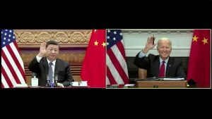 Screen shot shows China President Xi Jinping and U.S President Joe Biden kick start their virtual meeting on Tuesday Nov 16, 2021.