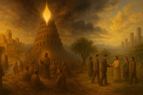 They became increasingly estranged from each other. Within a relatively short time period, the Babylonians had gone from a prevailing sense of kinship, described in the Book of Genesis (11:1) as being “of one language and one speech,” to vanity and alienation. From simple people who were content with their lot, the Babylonians became greedy and self-centered, saying, “Come, let us build ourselves a city, and a tower whose top reaches to heaven, and let us make ourselves a name” (Genesis 11:4).