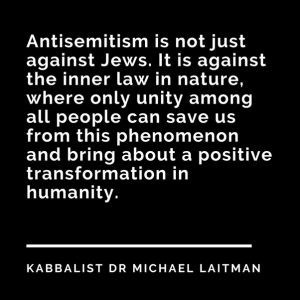 Antisemitism is not just against Jews. It is against the inner law in nature, where only unity among all people can save us from this phenomenon and bring about a positive transformation in humanity. Antisemitism is thus by no means a narrow inclination toward Jews. It is much broader in scope.