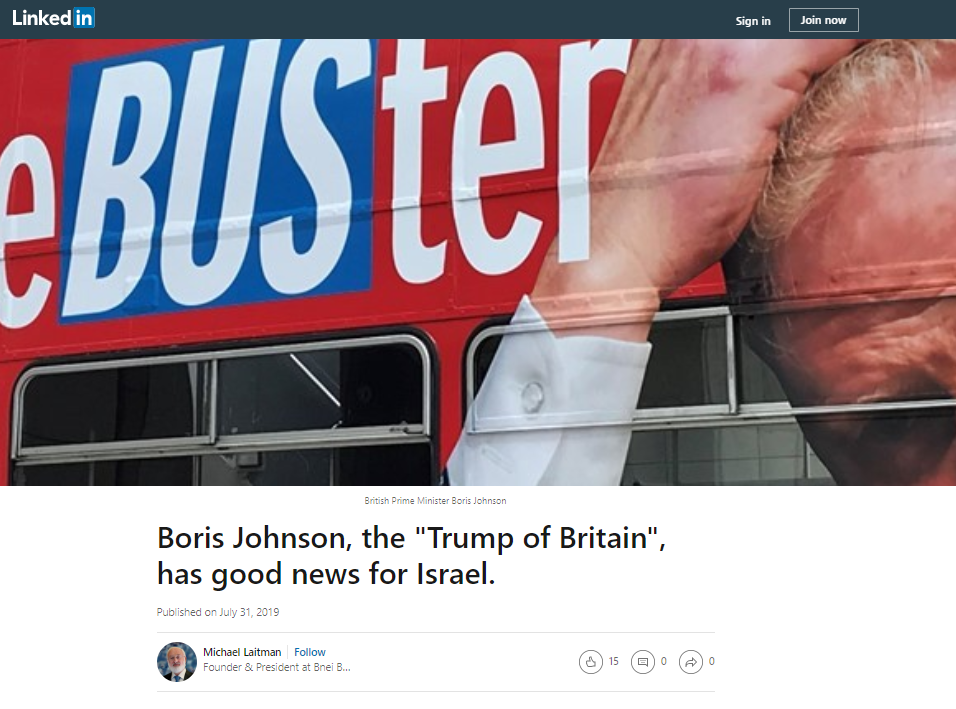 I hope that Trump and Johnson will find common ground, strengthen each other, and bring with them a spirit of change. Not just for Europe, but for the world as well. And of course, high level politicians who are supportive of Israel, are only giving us an opportunity to realize our role for the benefit of the world.
