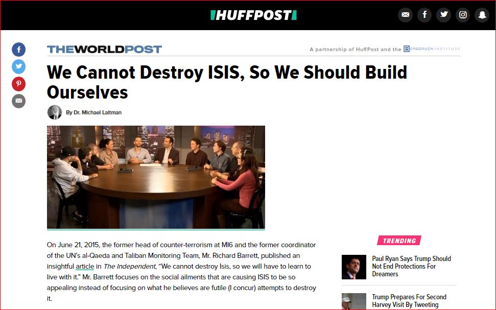 On June 21, 2015, the former head of counter-terrorism at MI6 and the former coordinator of the UN’s al-Qaeda and Taliban Monitoring Team, Mr. Richard Barrett, published an insightful article in The Independent, “We cannot destroy Isis, so we will have to learn to live with it.” Mr. Barrett focuses on the social ailments that are causing ISIS to be so appealing instead of focusing on what he believes are futile (I concur) attempts to destroy it.