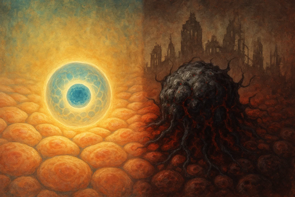 Unlike us, in every natural system, life develops in balance between its parts. Nature places each element in its proper place, and integral connection creates harmony, like cells and organs in a healthily functioning body. When a certain cell starts consuming its surroundings, it becomes cancerous. It “sees” only itself, becoming inconsiderate of everything around it. Its increase eventually leads to the collapse of the body, as well as to its own death. But it cannot stop itself.