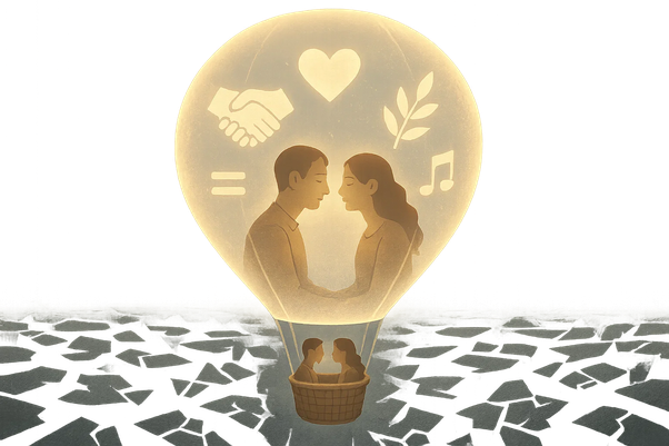 The words we say are not what matter, but concession and mutual acceptance. If we each strive to let go of ourselves and accept what the other feels, we begin to rise above ourselves. Accordingly, we exit the narrow, egoistic perception into a new, vast, and unlimited world, as if floating in a hot air balloon.