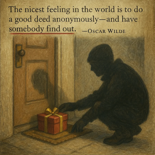 Oscar Wilde is attributed to having once said, “The nicest feeling in the world is to do a good deed anonymously—and have somebody find out.” I would underline, “somebody find out,” because our ego always seeks recognition.