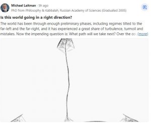 The days of moving back and forth between left and right have reached their dead-end. Today, our survival, at the very least, and moreover, our ability to draw motivation, happiness, success and confidence from a fresh new source of vitality, depends on us rising above our egoistic nature, period.