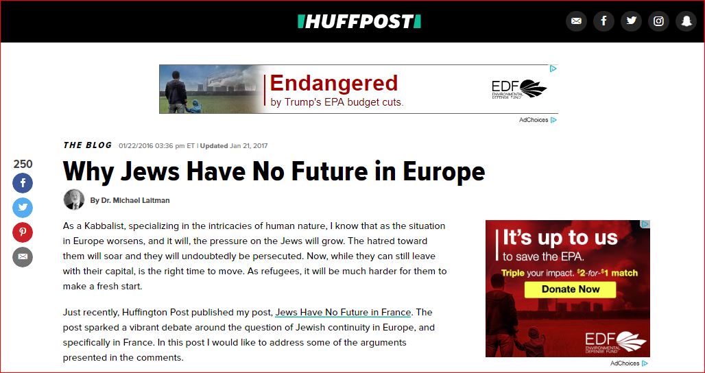 What is true for Germany is even truer for France, as evident from the horrific events of November 13, in particular, and all of 2015, in general. Even the well-established British Jewish community is not a haven for Jews in view of the hostile atmosphere in the UK toward Israel and toward Jews. In light of all that, I don’t mind being called “defeatist,” as long as perhaps some Jews will read and take notice.