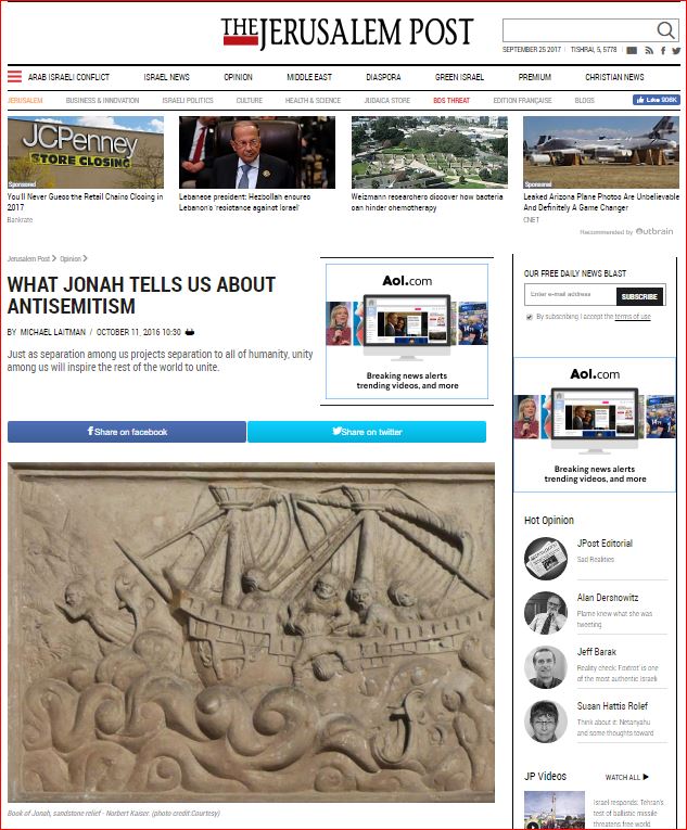 In many ways, today’s world is similar to Jonah’s ship. As Christine Lagarde, head of the International Monetary Fund, put it: “We are all in one boat, one global economy. Our fortunes rise together, and they fall together. …We have a collective responsibility—to bring about a more stable and more prosperous world, a world in which every person in every country can reach their full potential.” Yet, the sea around us is raging, and the sailors, who are all of humanity, are blaming the Jew on board for all their troubles.
