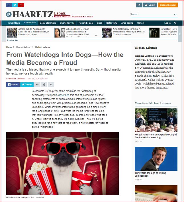 Journalists like to present the media as the “watchdog of democracy.” Wikipedia describes this sort of journalism as “fact-checking statements of public officials, interviewing public figures and challenging them with problems or concerns,” and “investigative journalism, which involves information-gathering on a single story for a long period of time.” But what the media forgets to tell us is that this watchdog, like any other dog, guards only those who feed it. Once Hillary is gone they will not mourn her. They will be too busy looking for a new lord to feed them, a new master for whom to be the “watchdogs.”