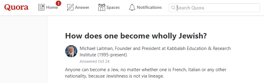 Anyone can become a Jew, no matter whether one is French, Italian or any other nationality, because Jewishness is not via lineage. To become a Jew means to adopt a certain way of thinking, an attitude toward life and its…