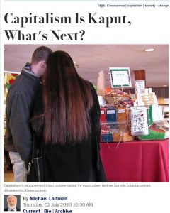 Capitalism has been dying for a long time but we didn’t know it. We thought we were practicing it; we thought it was the most advanced economic system humankind has ever conceived, while in fact, it has long been kaput or as Webster’s Dictionary defines it, “utterly finished, defeated, destroyed, unable to function.” Indeed, capitalism has been destroyed by the very force on which it intended to capitalize: the human ego.