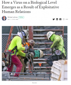 How a Virus on a Biological Level Emerges as a Result of Exploitative Human Relations