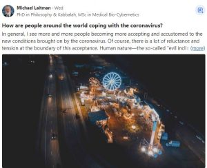 I understand that the virus has killed and infected vast amounts of people, and that many more have become financially and personally stressed. But if we could see the overarching global tendency taking place, then we would see that this current direction has spared us more suffering than if we had continued our previous ways.