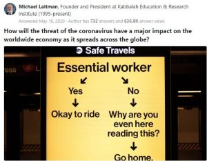 In other words, the economy we are headed toward, and which the coronavirus period has hinted at, is one where we will need our life’s essentials covered, and one where we will shift our focus to strengthen and grow human society—social happiness, health and well-being—instead of each of us trying to build our personal empires.