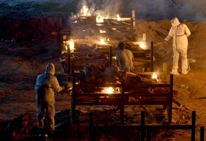 [Relatives cremate the bodies of persons who died due to the coronavirus disease (COVID-19), at a crematorium ground in Giddenahalli village on the outskirts of Bengaluru, India, May 2, 2021. REUTERS/Samuel Rajkumar]