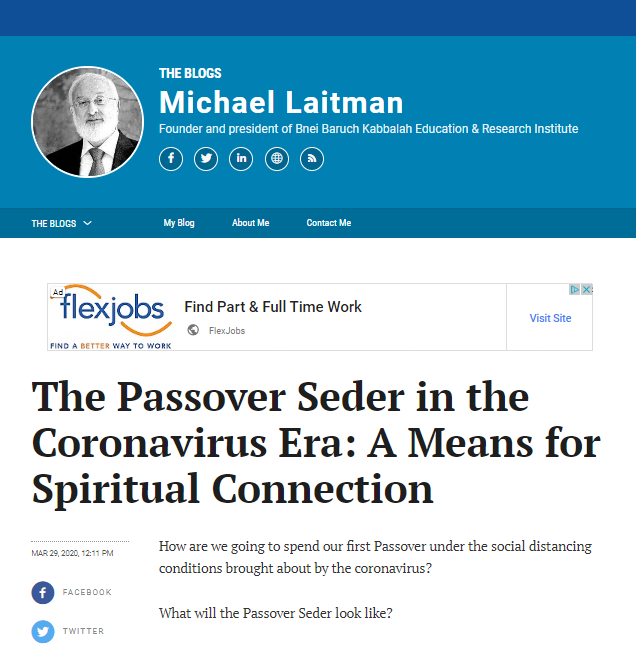 The Passover Seder in the Coronavirus Era: A Means for Spiritual Connection