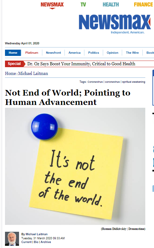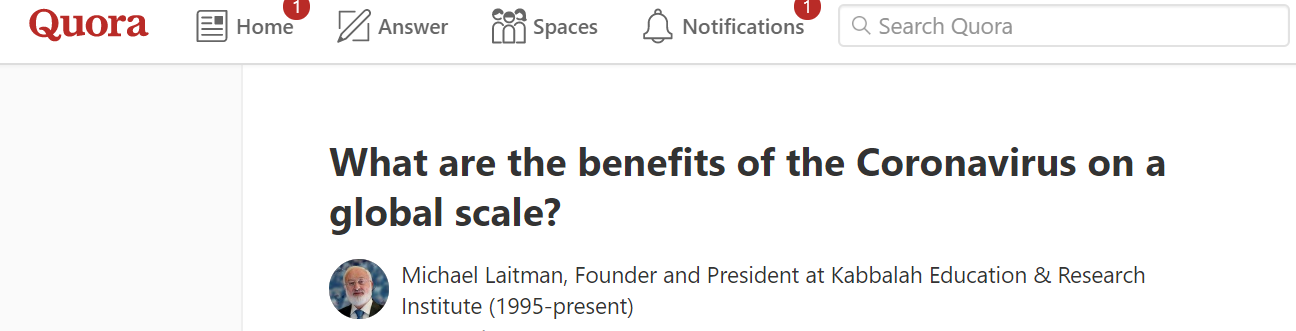 If we use the coronavirus period to learn about how it fits into nature’s plan of raising humanity to complete and harmonious connection, and also how it emerged to show us the flaw of our self-centered approaches to each other,