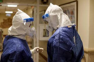 Medical staff chat inside the coronavirus disease (COVID-19) ward at Beilinson hospital in Petah Tikva, Israel August 18, 2021 REUTERS/ Ammar Awad