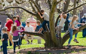 [May 2, 2020, Concord, New Hampshire, USA: Children play at Reopen NH rally in Concord. Hundreds of protesters gather outside of the State House to protest New Hampshire Governor Chris Sununu to end his stay-at-home emergency order at Reopen NH rally in Concord]