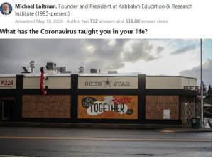 Using this example, we can take further steps to more and more unification out of our own free choice. In other words, instead of waiting for nature to inflict us with more suffering in order to unite us once again, we can take our unity into our own hands, and actively seek how we can place the benefit of others over self-benefit in our day-to-day and moment-to-moment interactions.