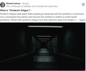 Pandemic fatigue takes place when people get exhausted with the pandemic’s restrictions over a prolonged time period, and become less inclined to adhere to public health guidelines.