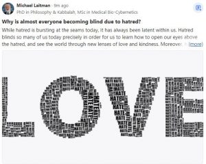 We just need to raise our sensitivity a little, to feel how the hatred flaring up within us is not an emotion that we should follow through with, in order to inflict pain upon others, and ultimately, also to ourselves; rather it is an invitation to become conscious and aware human beings in the fullest sense of the term: to make conscious moves in elevating love, kindness and unity above the hatred, and by doing so, unlock a new reality and discover a whole new world of fulfillment.