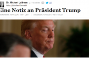 (im Vorfeld des Israel-Besuchs) (Quelle: Huffpost.de) Präsident Trump, ich wünsche Ihnen einen angenehmen Aufenthalt in Israel. Nach wie vor bin ich der Meinung, dass Ihr Erfolg im Amt davon abhängt, wie effektiv Sie die „Amerika zuerst“ – Politik anwenden. Verehrter…