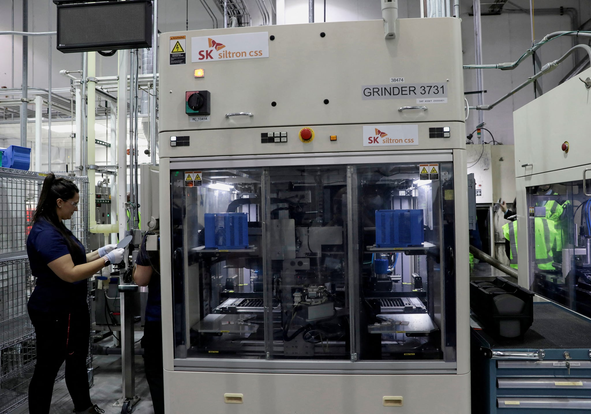 Der Produktionsbereich von SK Siltron CSS, einer Silizium-Wafer-Fabrik, die von einem südkoreanischen Halbleiterhersteller ausgebaut wird, ist in Auburn, Michigan, zu sehen