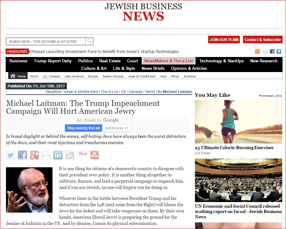 We may denounce the vile bigotry against Israel that Sidney Blumenthal relentlessly whispered into Hillary Clinton’s ears, but the campaign of Jewish liberals against President Trump poses an even graver danger. During the election campaign, these liberals portrayed Trump as an antisemite. When they realized he was not antisemitic, they argued that his rhetoric is promoting antisemitism. Now that Donald Trump is the president, they are doing all they can to impeach him.