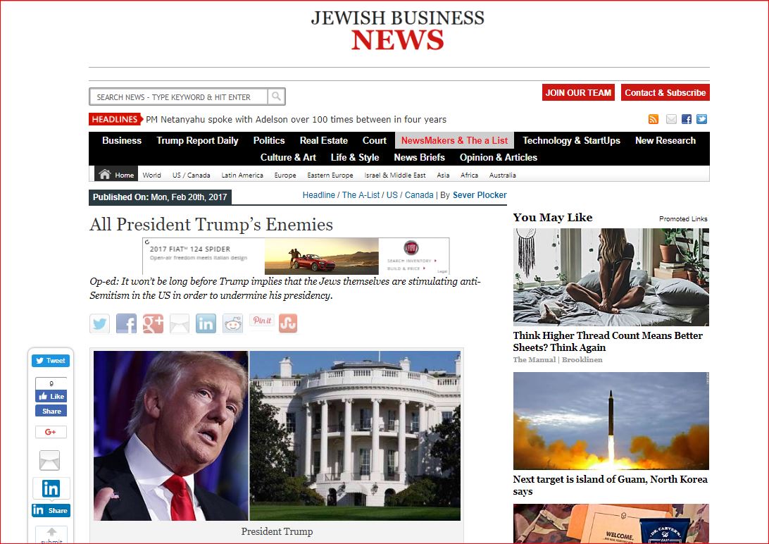 But the attempt to purify himself of anti-Semitism by calling the recent incidents a provocation of “the other camp” is similar. It won’t be long before it is implied that the Jews themselves are stimulating anti-Semitism in the United States in order to undermine Trump’s presidency.