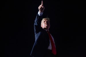 Former President Donald Trump wraps up his speech in Des Moines, Iowa, on Sat. Oct. 9, 2021