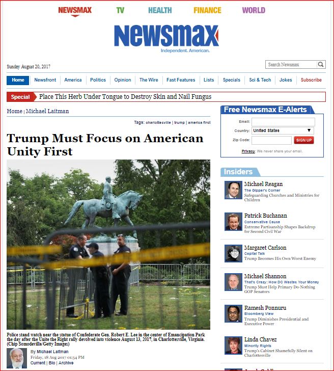 Soon after the inauguration, I warned that the Republican, conservative silent majority of the American public has been silent for too long and that it could erupt in unpredictable ways unless Trump begins to implement his America First plan and strives toward uniting all factions of American society. The events in Charlottesville may be the beginning of what I feared would happen unless he takes immediate action in this direction.