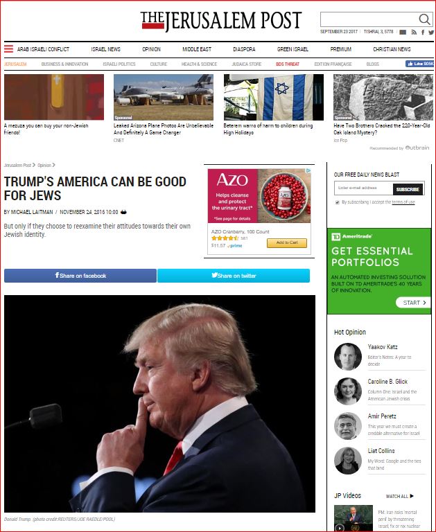 The election of Donald Trump for president has exacerbated the split in American society, but even more so, the inner contradictions of its Jewish citizens. Of the over 70% who voted for Clinton, most feel angry and downright frightened of their upcoming president and the wave of anti-Semitism they are experiencing. Other Jews who voted for Trump for his pro-Israel agenda, argue that the supposed rise in anti-Semitism since the elections is merely putting the focus on something that was evidently widespread before, albeit in different form, as in the case of American campuses which are awash with neo-liberal, politically correct thinking. They understand that anti-Semitism exists both in the hard right and the hard left, and so do not believe either choice would have secured their safety. And then there are the Jews who are themselves split in half between their American liberal upbringing and values, and their inclination to do what is best for the state of Israel. These differences can be easily solved, if we step back and see what is truly at stake.