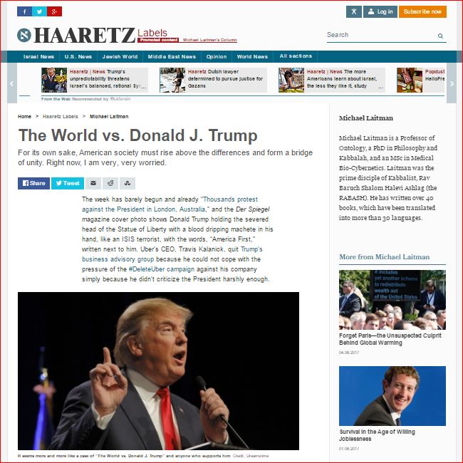 The week has barely begun and already “Thousands protest against the President in London, Australia,” and the Der Spiegel magazine cover photo shows Donald Trump holding the severed head of the Statue of Liberty with a blood dripping machete in his hand, like an ISIS terrorist, with the words, “America First,” written next to him. Uber’s CEO, Travis Kalanick, quit Trump’s business advisory group because he could not cope with the pressure of the #DeleteUber campaign against his company simply because he didn’t criticize the President harshly enough.
