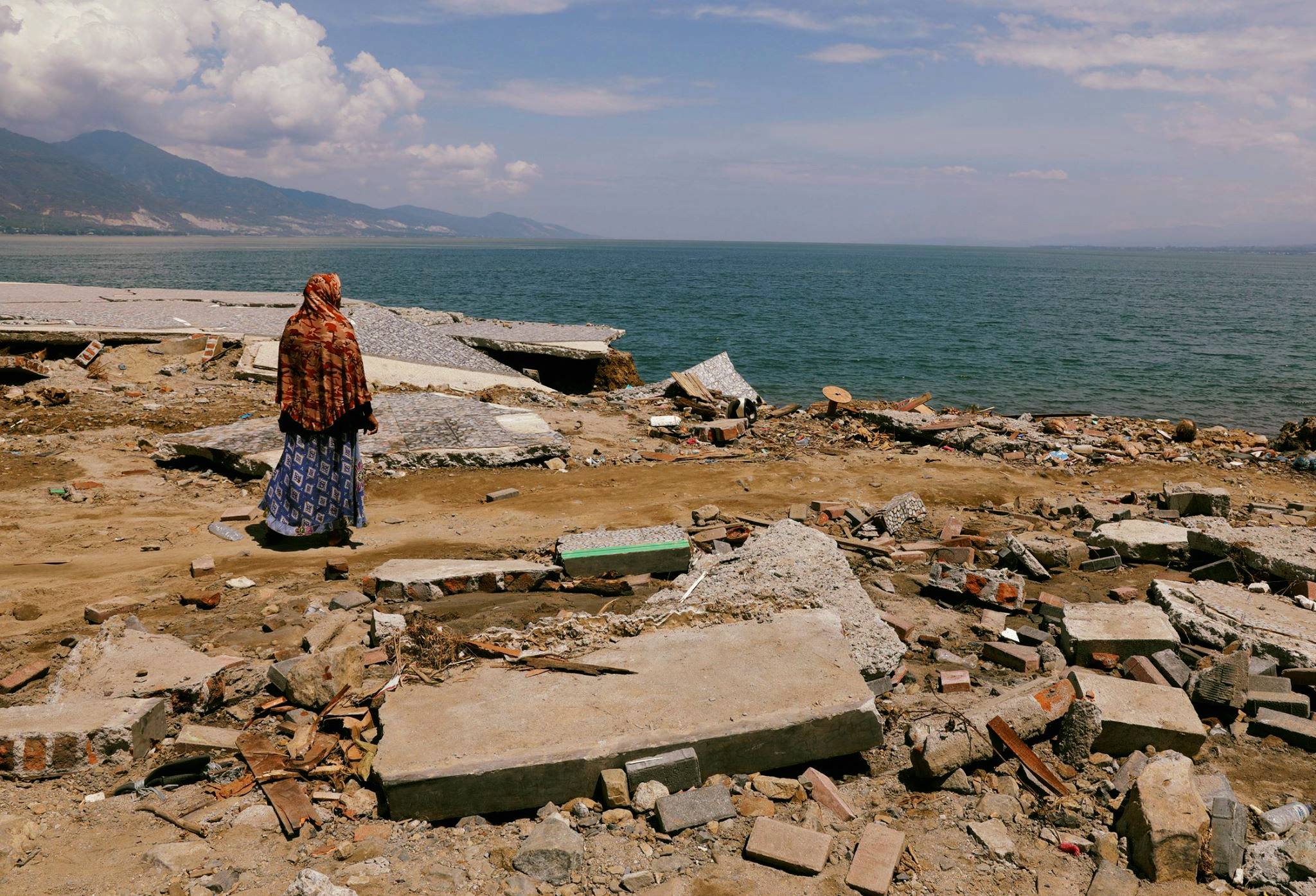 “De pronto vi dos cuerpos inertes, semienterrados en el lodo entre los escombros”, lloraba Edi Stivan mientras contaba ese terrible momento vivido al lado de su hogar en la ciudad de Palu. “Vi a mi padre aún abrazando a mi…