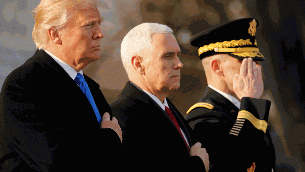 El presidente electo de los Estados Unidos, Donald Trump (izquierda) y el vicepresidente electo Mike Pence en el toque de silencio tras depositar una corona en la tumba del soldado desconocido en el cementerio nacional de Arlington, Virginia, EE.UU. JREUTERS/Jonathan Ernst