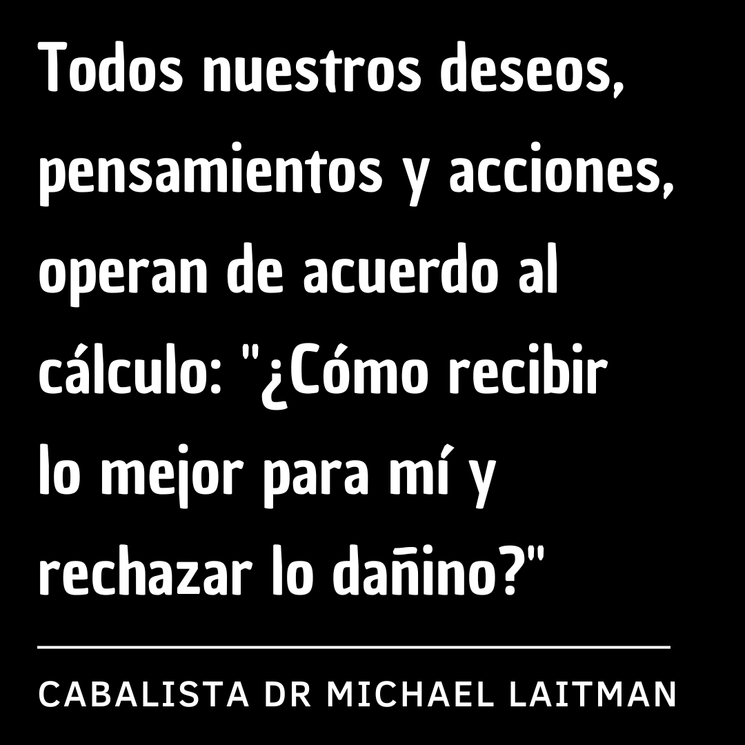 Así funciona la naturaleza humana y la esencia de la vida. Todos nuestros deseos, pensamientos y acciones, operan de acuerdo con el cálculo: «¿Cómo recibir lo mejor para mí y rechazar lo dañino?»