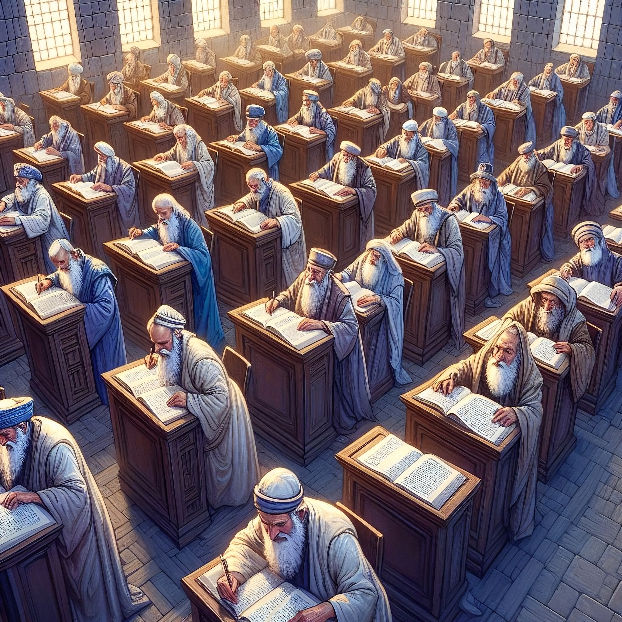 “En una ocasión el rey Tolomeo reunió a 72 ancianos, los llevó a 72 habitaciones separadas, sin revelarles por qué fueron convocados. Entró a cada habitación y dijo: ‘Escribe para mí la Torá de Moses, tu maestro`. Dios puso en su corazón que cada uno tradujera de forma idéntica a los demás”. (Meguilá 9)