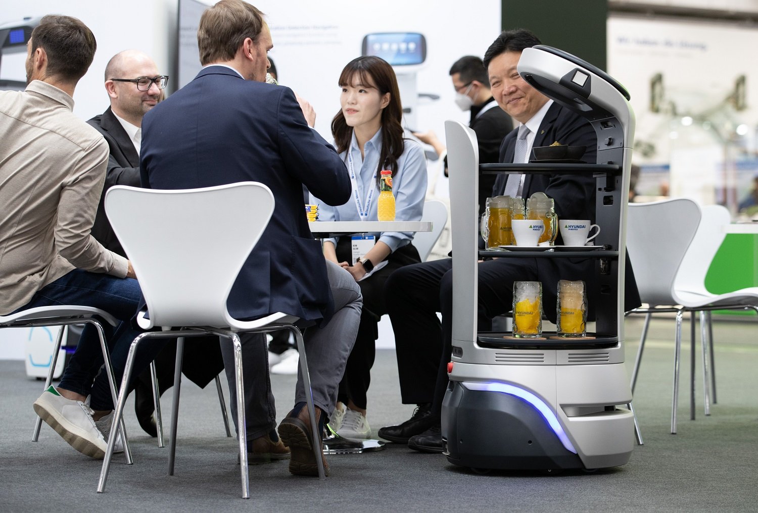 Foto: Robots de servicio, en situaciones como. abastecimiento, se puede ver en el pabellón del fabricante Hyundai en Hannover Messe 2022.