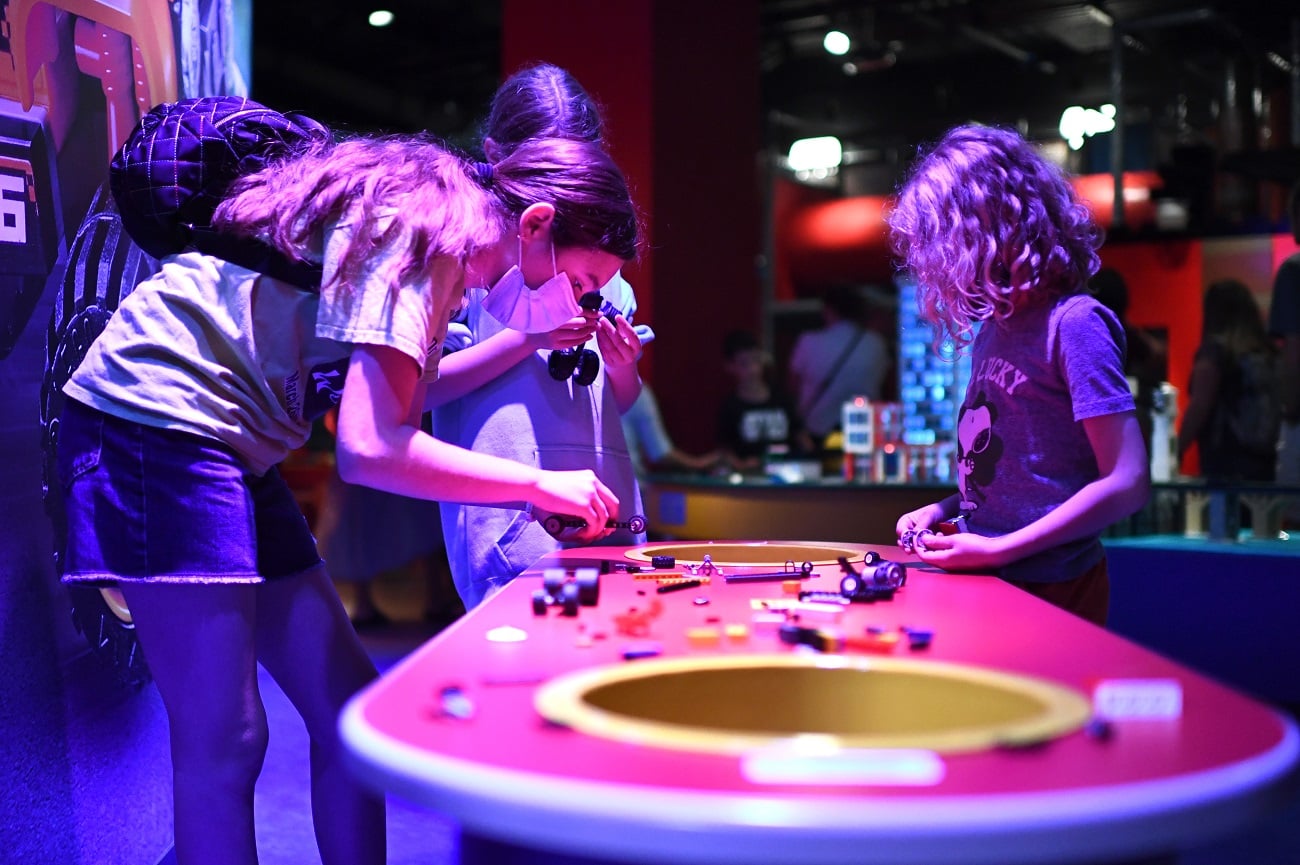 Niños construyendo autos de carreras en su visita a Legoland en American Dream Entertainment Mall, parte del complejo deportivo Meadowlands, en Rutherford, Nueva Jersey, 29/jun/21.