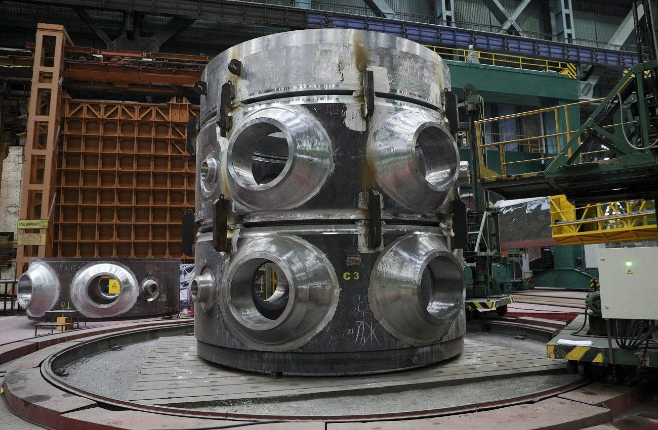 Foto: VOLGODONSK, región de ROSTOV-ON-DON, RUSIA – 28/sep/21: Montaje de semi-recipientes para reactores nucleares, en la planta Atommash, la rama Volgodonsk de AEM-Technology, parte de la división de construcción de maquinaria de Rosatom Atomenergomash. La fábrica es uno de los principales proveedores de equipo para plantas nucleares, de petróleo, gas y térmicas. Erik Romanenko/TASS.