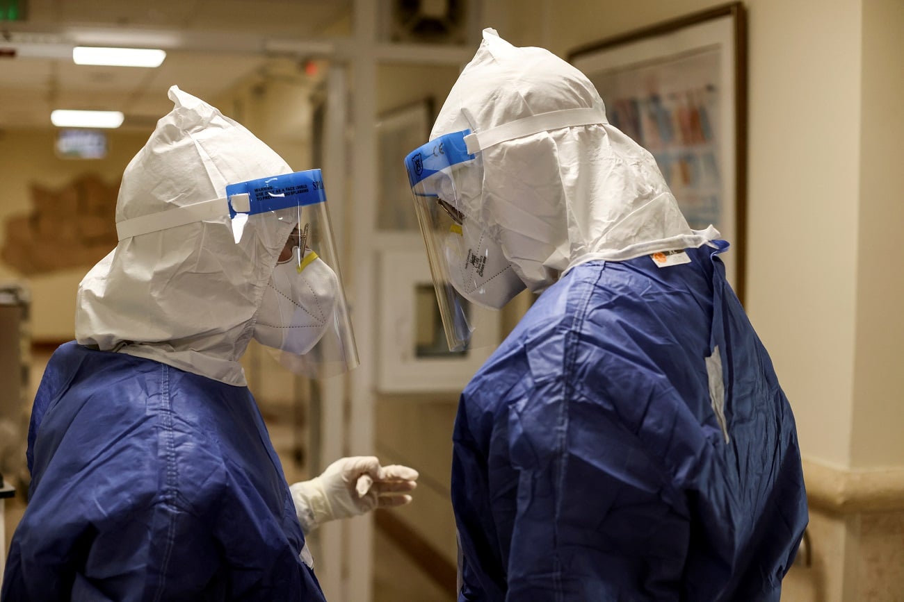Personal médico charla dentro de la sala de enfermedad por coronavirus (COVID-19) en el hospital Beilinson en Petah Tikva, Israel, 18/ago/21 REUTERS / Ammar Awad.