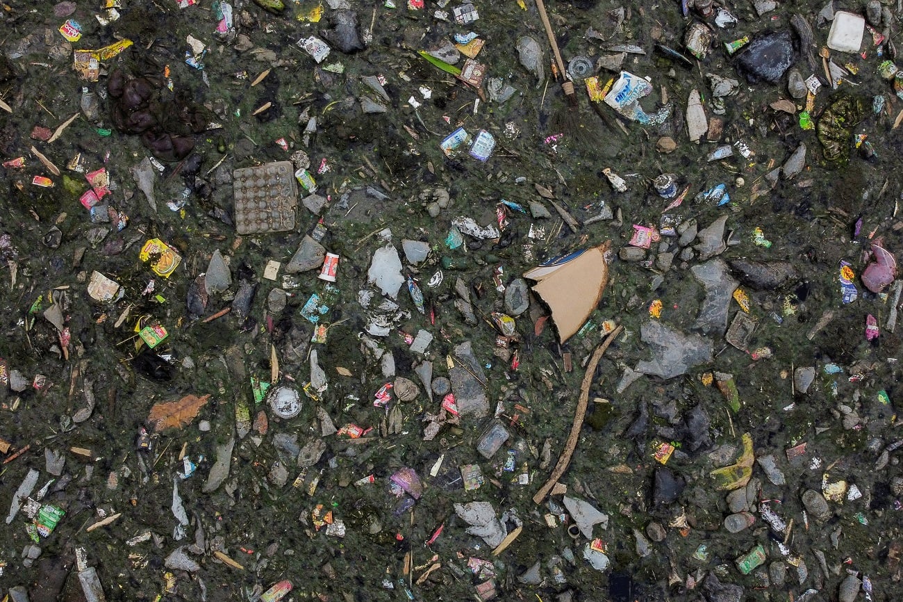 [Vista aérea muestra los desechos domésticos flotando en el río Citarum en Bandung, Indonesia, 15/mar/21. El gobierno se comprometió a limpiar el río, que se considera, uno de los más contaminados del mundo y hacer que para 2025, el agua sea potable, pero los desechos domésticos e industriales siguen fluyendo en su corriente. Fotografía tomada con un dron. REUTERS / Willy Kurniawan]