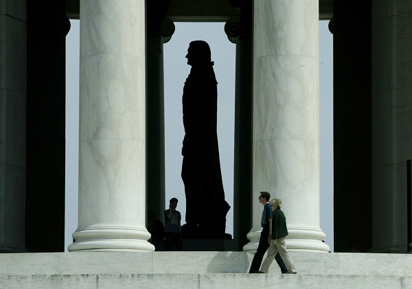 ג'פרסון היה אחד מהאבות המייסדים של המדינה. נשיאה השלישי של ארה"ב, מייסד המפלגה הדמוקרטית-רפובליקנית, האיש שכתב את מיטב מסמכיה המכוננים, כמו "הכרזת העצמאות". ג'פרסון הניח את היסודות לדמוקרטיה המשגשגת וראה בה צורת שלטון ההולמת את הקדמה האנושית, אך לא הוא שהמציא אותה.