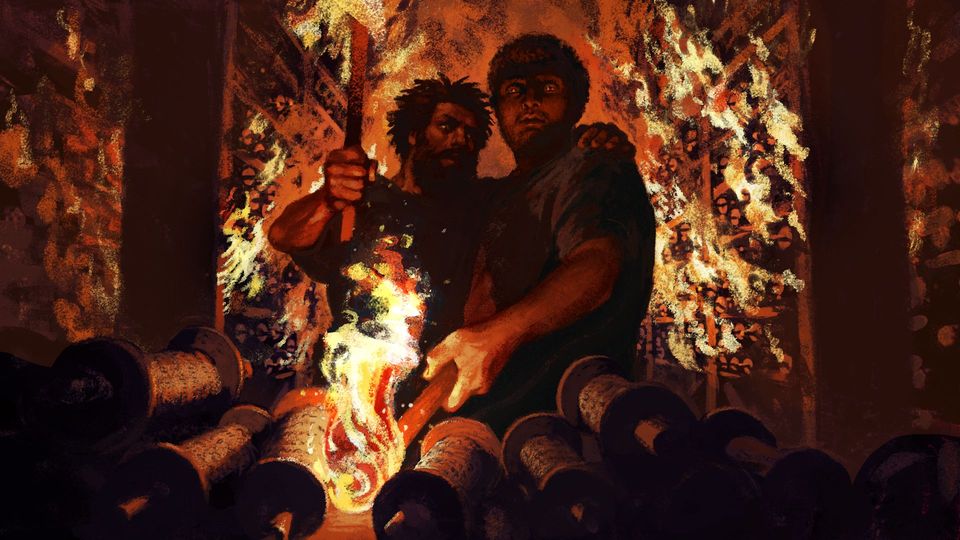(איור מתוך "אגדת חורבן": דוד פולונסקי ומיכאל פאוסט)