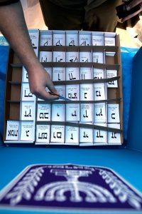 [An Israeli soldier arranges ballot papers inside a mobile voting booth, as Israeli soldiers vote two days before polling stations open in the rest of Israel, at a military post outside the northern Gaza Strip, in southern Israel April 7, 2019. REUTERS/Amir Cohen]