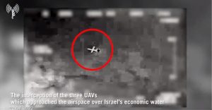 An IAF fighter jet and an Israeli Navy missile ship intercepted 3 hostile UAVs from Lebanon which approached the airspace over Israel’s economic waters today. (CREDIT: Israel Defense Forces @IDF on Twitter)