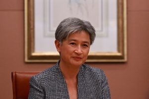 Australian Foreign Minister Penny Wong attends a meeting between Prime Minister of Singapore Lee Hsien Loong and Australian Prime Minister Anthony Albanese at Parliament House in Canberra, Tuesday, October 18, 2022. Lukas Coch/Pool via REUTERS