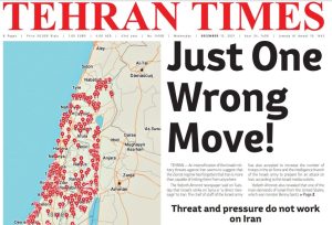 “It seems that the Zionist regime has forgotten that Iran is more than capable of hitting it from anywhere,” the Tehran Times recently opened its front-page article with a map of targets against Israel covering virtually the entire territory of the country. The headline, “Just one wrong move!”.